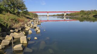 始めはヘラ竿(月光剛15尺の先3本)で作った#3ロッドの試し釣りです。