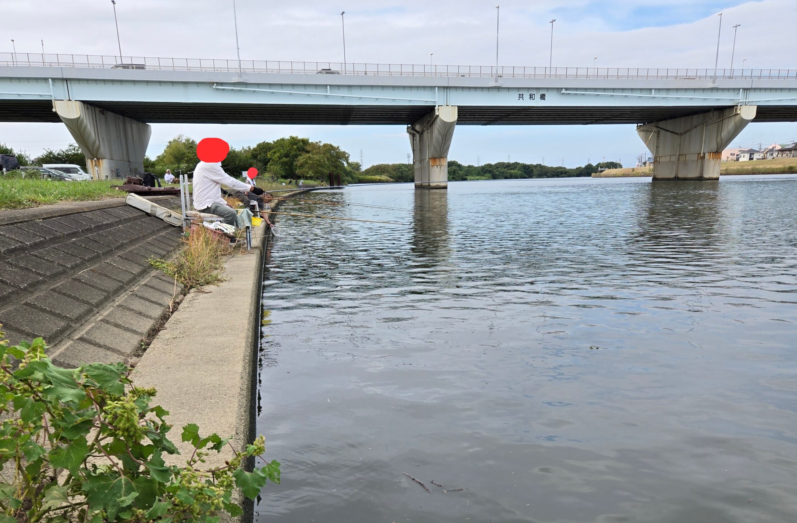 最下流のフェンス際にはご夫婦が単竿でヘラ釣りを楽しんでいますが、今日は小さいニゴイが釣れただけということです。