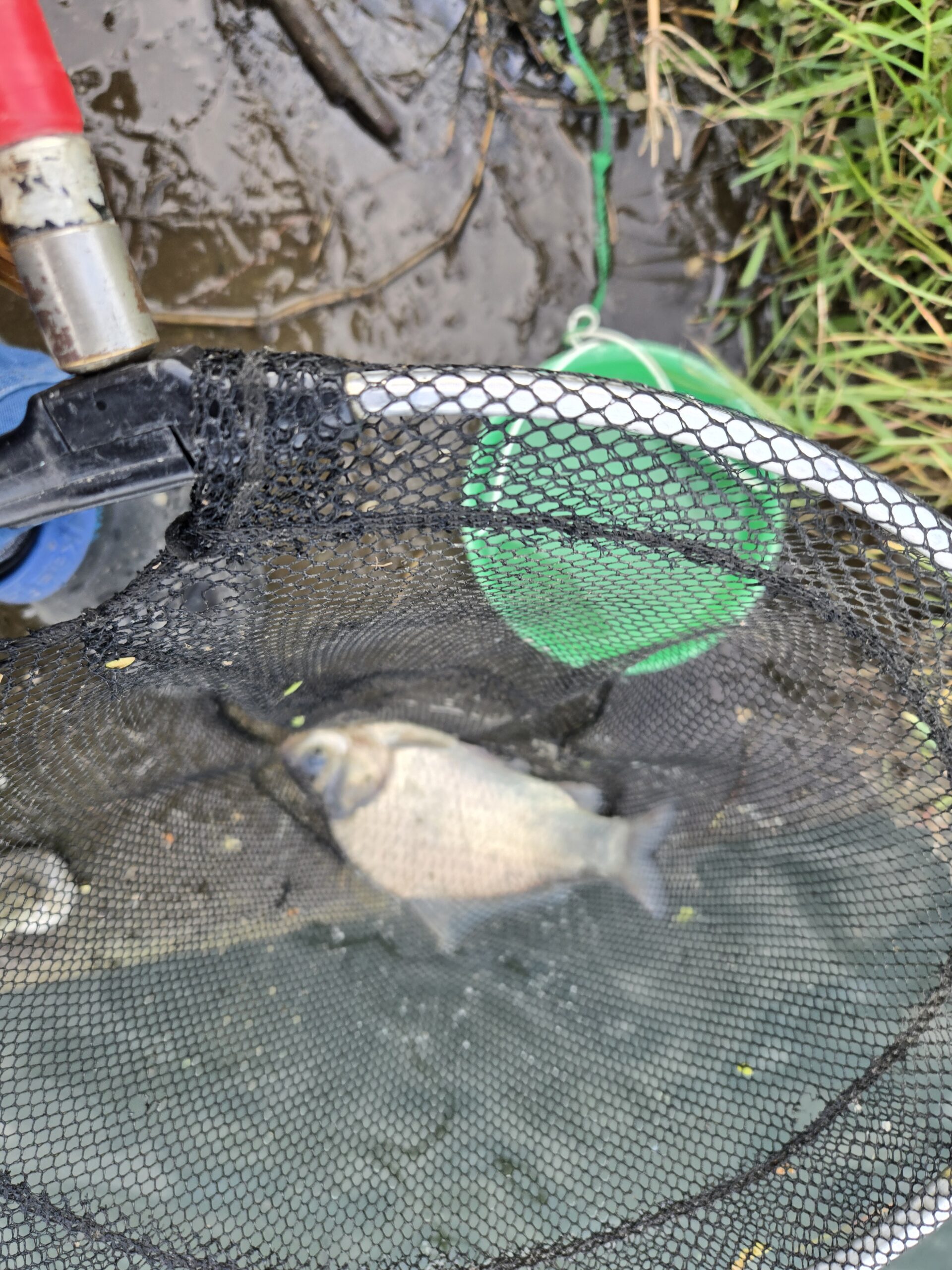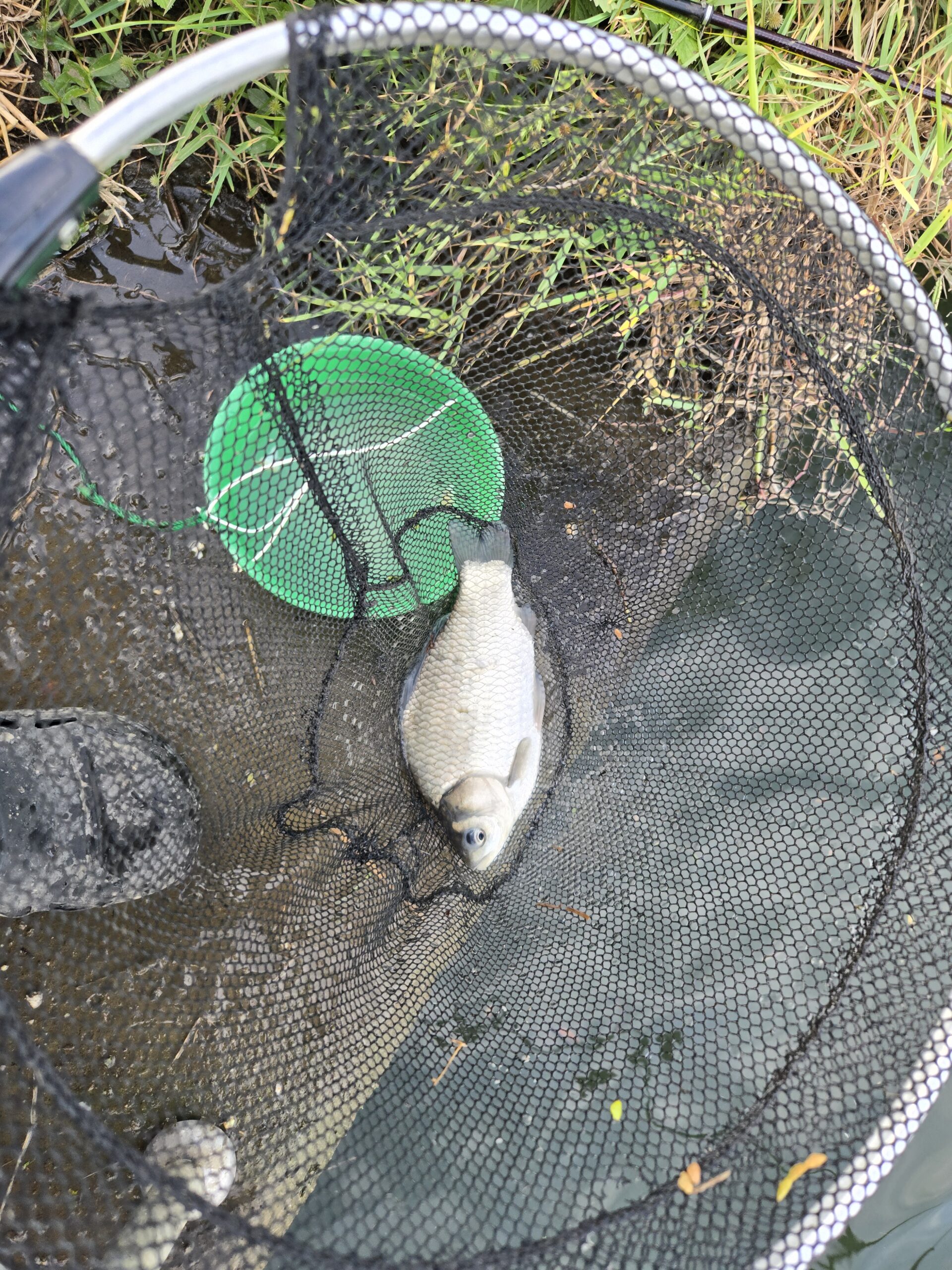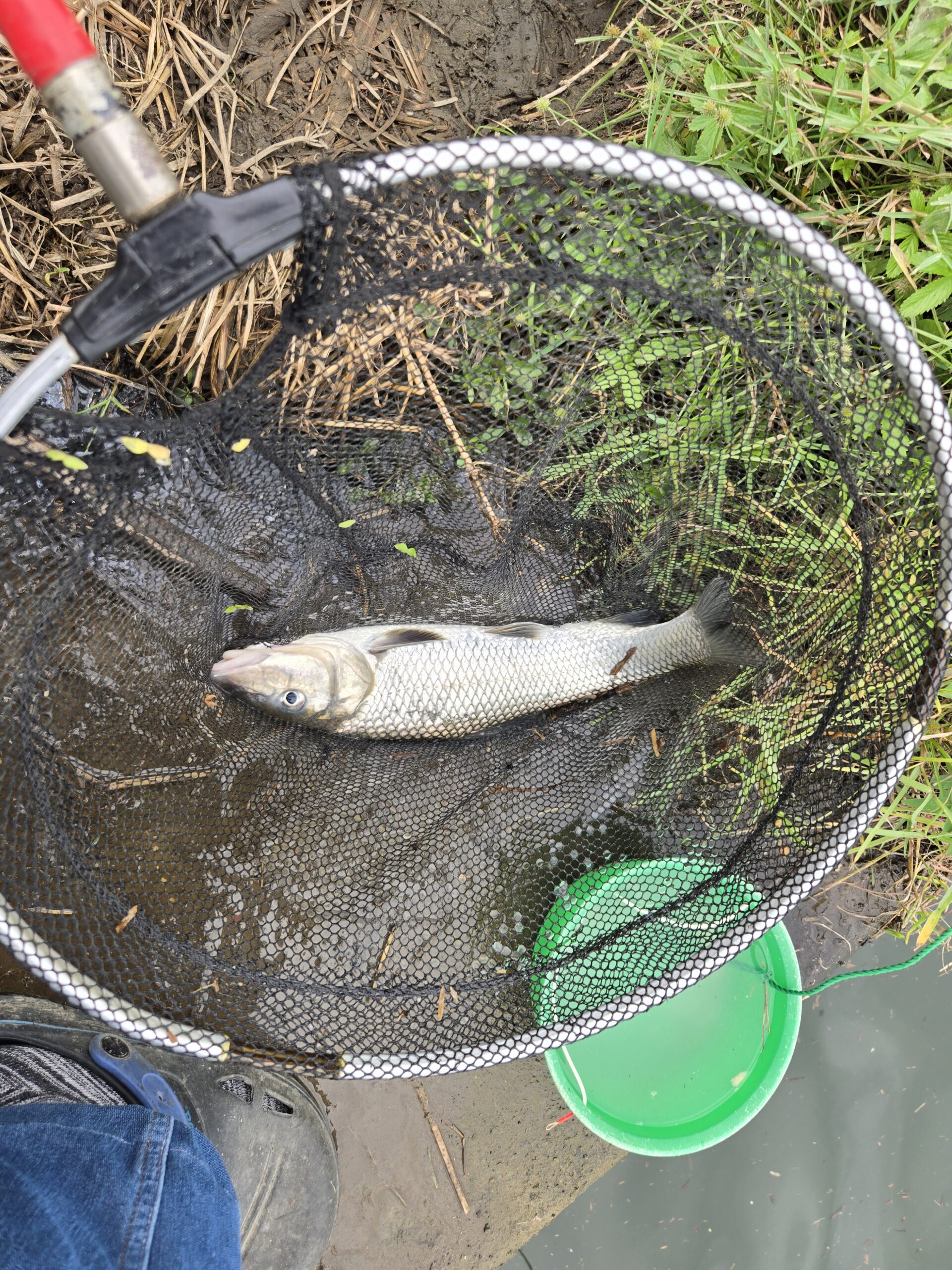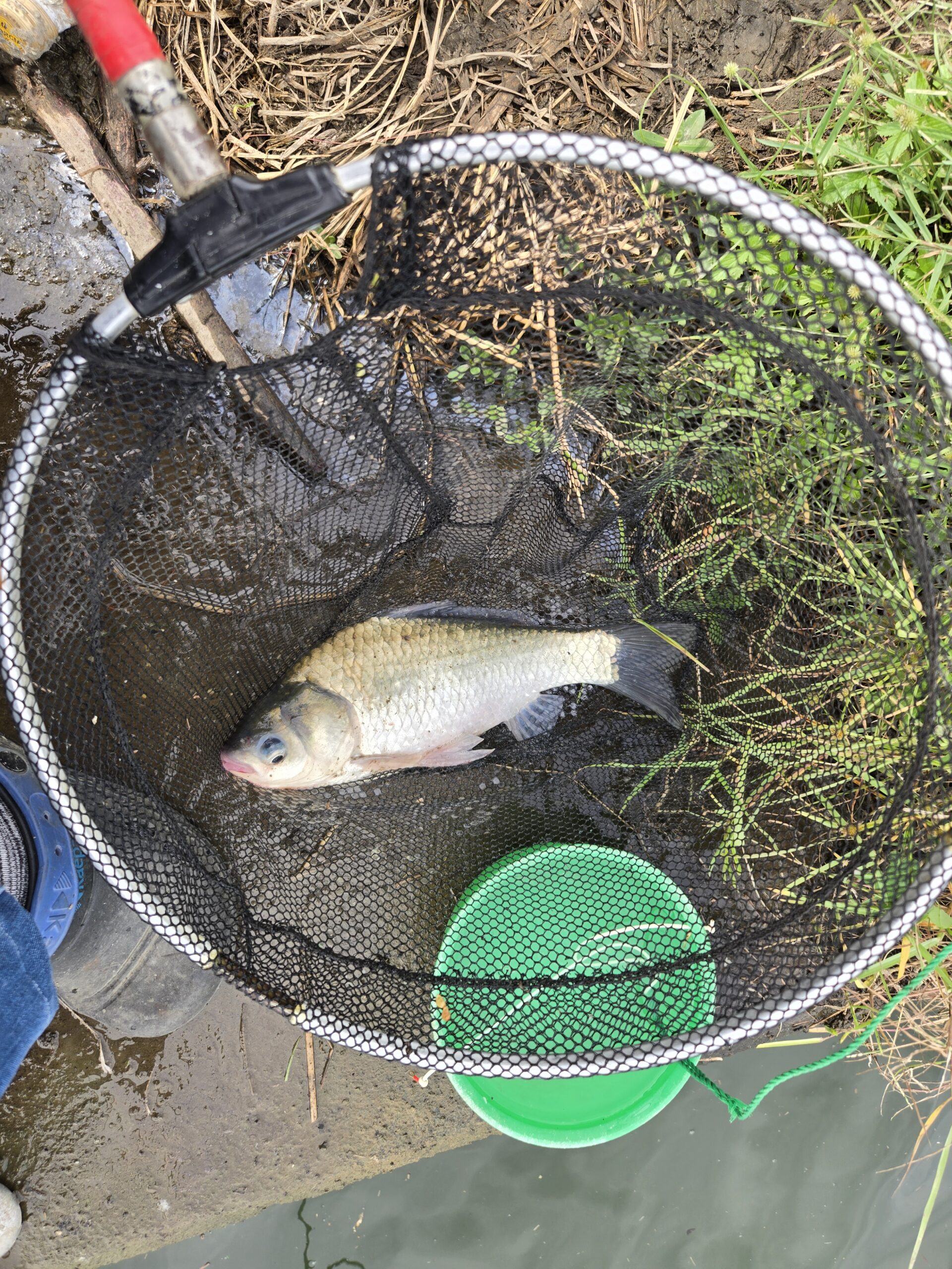 11時を回ったところで船着き場を見に行くと、吸込み釣りの人がいてヘラとコイっ子を釣ったということでした。
