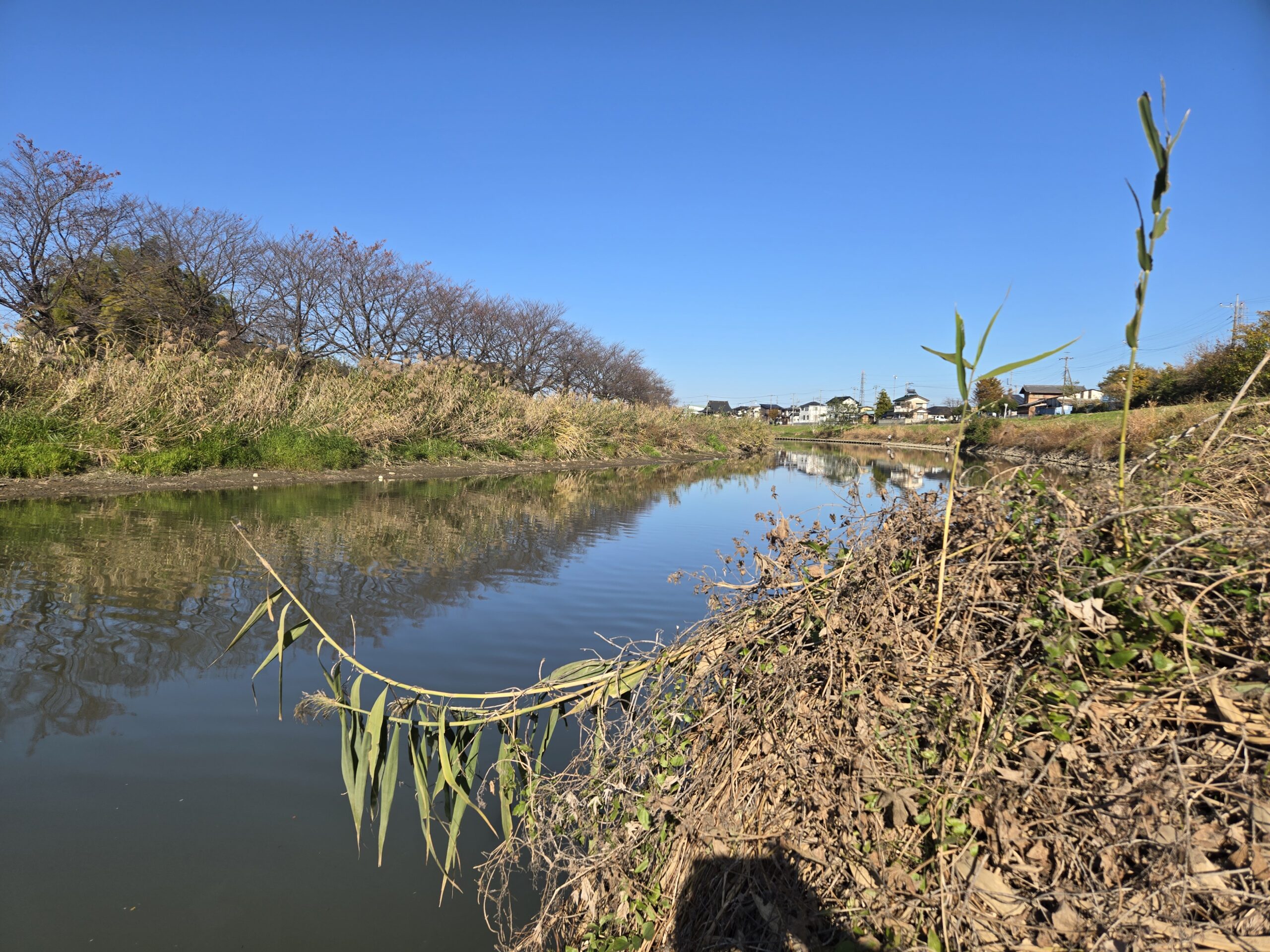 ここは足場が水面から2メートル近く高くて、草が生えているので釣りにくいです。